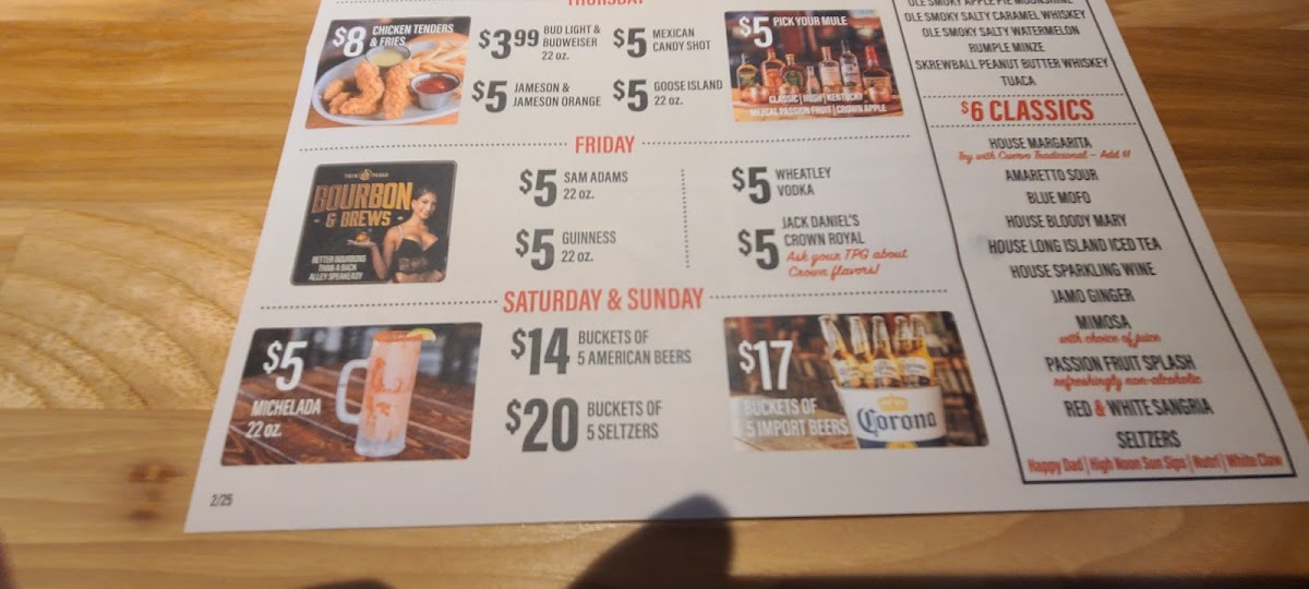 “ Opening day, absolutely packed, got in and seated pretty quick. Fantastic daily specials on food and drinks, solid menu plenty of choices for any appetite. Food was great and prices are hands down the best in town, plenty of seating and two bars to belly up to, one extends into the outside seating area. Great service our waitress Cassidy was very helpful, prompt, and friendly. ”